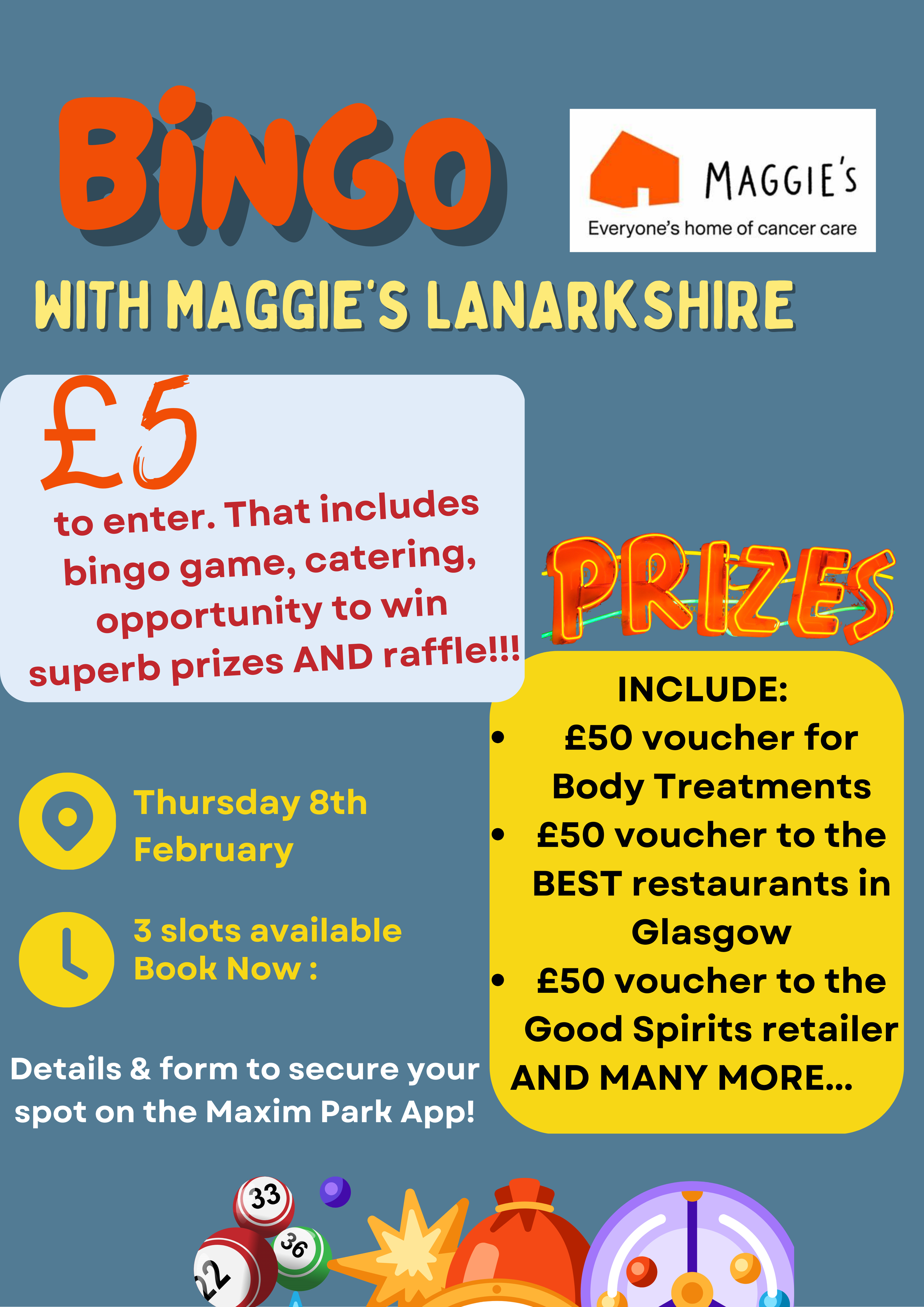 We are happy to announce we will be holding Charity Bingo with Maggie’s Lanarkshire.